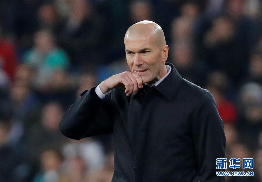 2月6日,皇家马德里队主帅齐达内在场边督战。 当日,在2019-2020赛季西班牙国王杯四分之一决赛中,皇家社会队客场以4比3战胜皇家马德里队,晋级四强。 新华社/路透