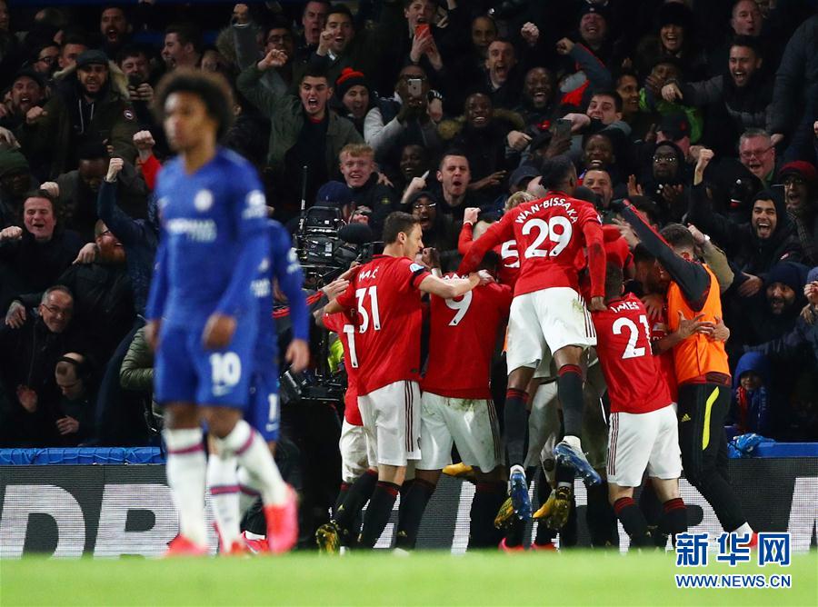 2月17日,曼联队球员庆祝马奎尔打入本队第二粒进球。 当日,在2019-2020赛季英格兰足球超级联赛第26轮比赛中,曼彻斯特联队客场以2比0战胜切尔西队。 新华社/路透
