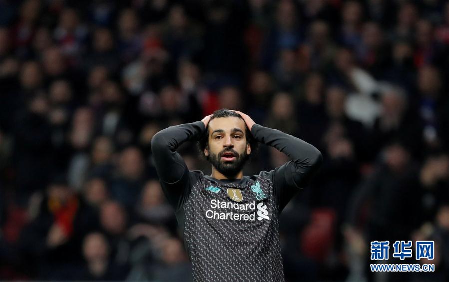 2月18日,利物浦队球员萨拉赫在比赛中错失良机后。 当日,在西班牙马德里举行的2019-2020赛季欧冠联赛八分之一决赛首回合比赛中,西甲马德里竞技队主场以1比0战胜英超利物浦队。 新华社/路透