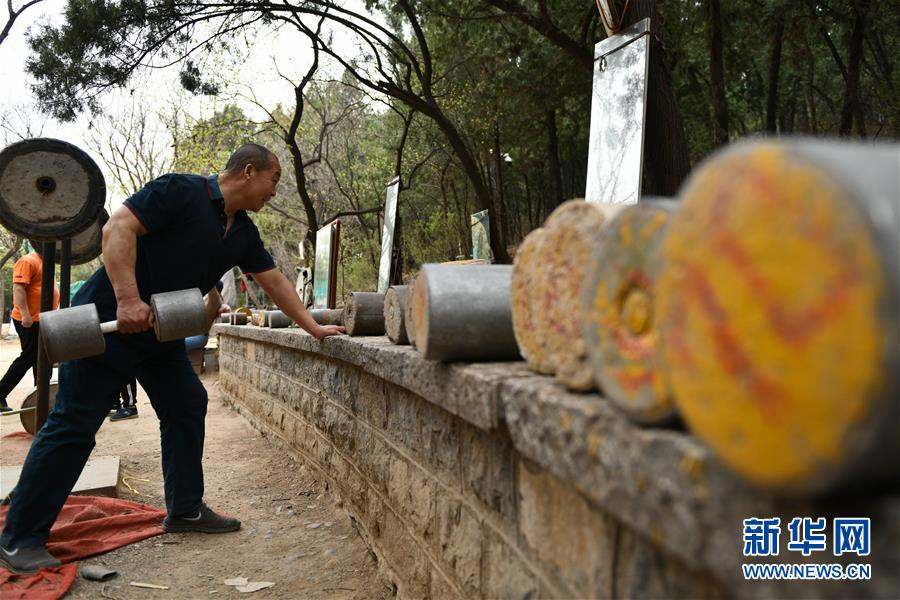 3月24日,一位健身爱好者在进行哑铃训练。 近日,随着疫情防控形势持续向好,山东济南室外文化体育设施等公共空间陆续恢复开放。在济南英雄山公园林间空地有一个特殊的“健身房”,在这里参加锻炼的多是60岁以上的健身爱好者,他们用各种自制器械“硬核”健身,愉悦心情,强健体魄。 新华社记者朱峥摄