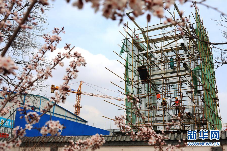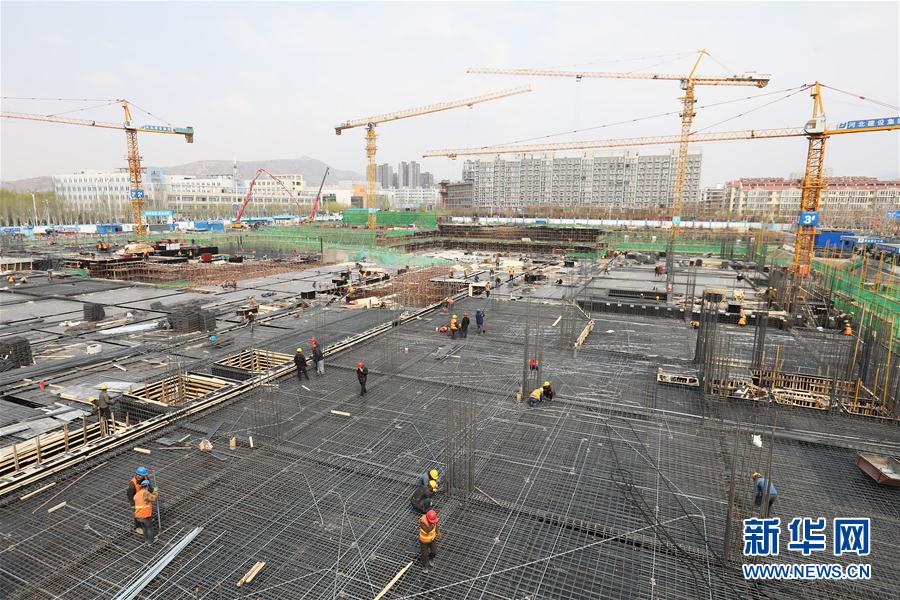 4月9日,工人在冬奥会非注册VIP接待中心工程现场施工。 连日来,位于河北省张家口经济开发区长城西大街的冬奥会非注册VIP接待中心项目工程建设有序推进。据介绍,该项目预计今年6月底完成主体结构封顶,整体工程预计2021年10月底完工。 新华社发(武殿森 摄)