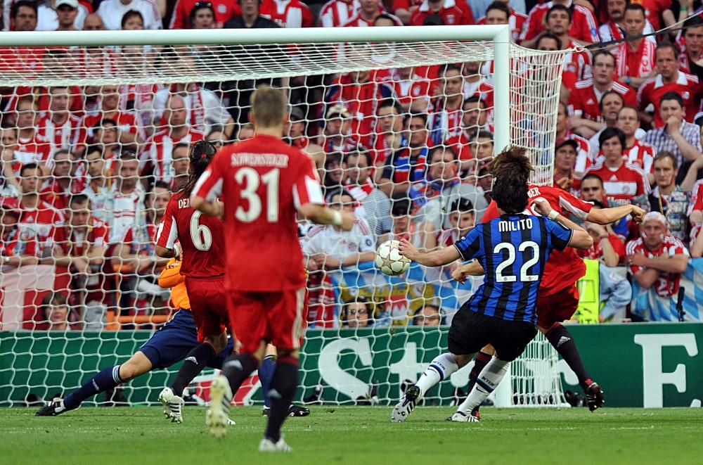 央视网消息:2010年5月23日,2009/10赛季欧冠决赛在伯纳乌球场上演,拜仁和国际米兰争夺最后的冠军。上半场米利托首开纪录,帮助国米暂时1-0领先。下半场米利托再入一球,最终帮助国际米兰2-0完胜拜仁,捧起欧冠联赛冠军。那个赛季的蓝黑军团还拿下了意大利杯和意甲冠军,成就队史也是意大利足坛首个三冠王。