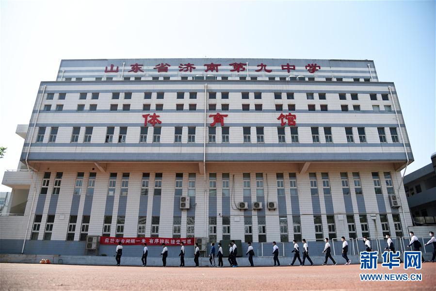 4月29日,山东省济南第九中学的学生在体育课上快步走。 山东省济南第九中学在积极防控疫情的基础上,为高三年级学生调整体育课教学内容,以快步走、太极拳、篮球运球、排球垫球等中、低强度的“舒缓”项目为主,达到提高学生身体素质的目标。 新华社记者 王凯 摄