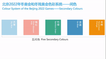 北京冬奥组委于2018年底启动了相关设计开发工作,经过对中国历史上代表性色彩的挖掘,对中国色彩文化的提炼,以及对北京、延庆和张家口三个赛区城市色彩的分析,设计了北京冬奥会和冬残奥会色彩系统,包括主色、间色、辅助色三部分。