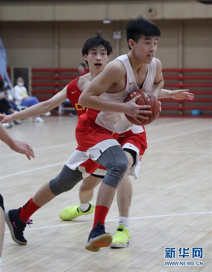 5月9日,中国青年男篮U17队球员林葳在比赛中突破。 当日,在北京封闭举行的中国青年男篮对抗赛中,国青U17队以70比54战胜国青U18队。 新华社记者孟永民摄