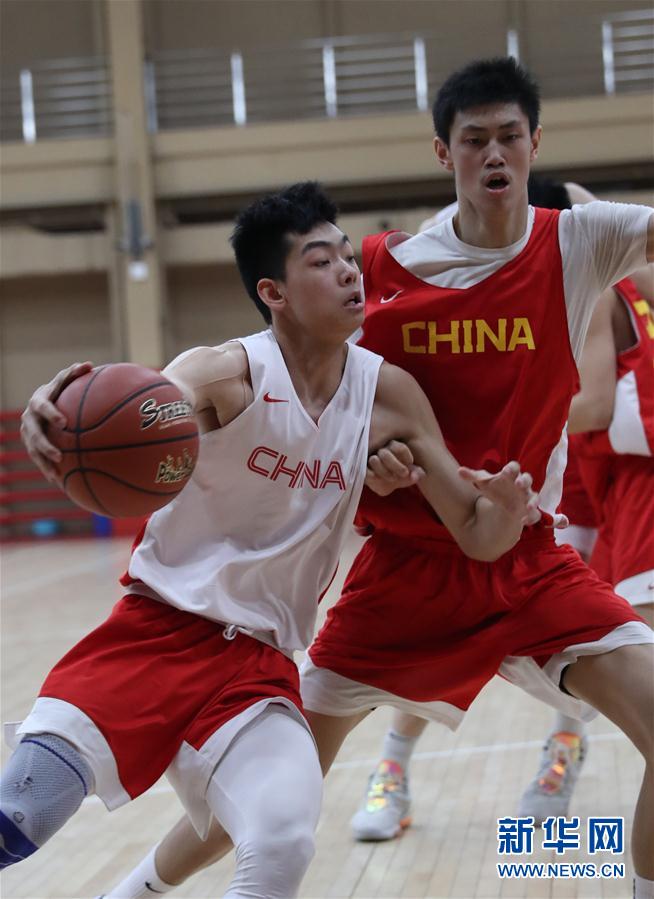 5月9日,中国青年男篮U17队球员王欣瑞(左)在比赛中运球突破。 当日,在北京封闭举行的中国青年男篮对抗赛中,国青U17队以70比54战胜国青U18队。 新华社记者孟永民摄