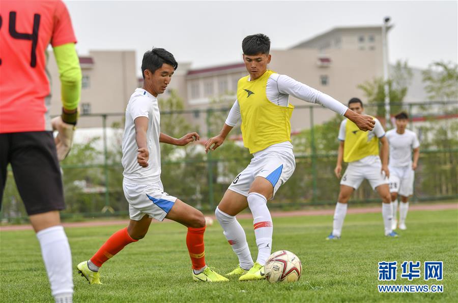 5月12日,新疆足协U19青年队球员肖开提江·塔依尔(右前)在训练中与队友拼抢。 当日,新疆足协U19青年队继续在新疆足球训练基地展开日常训练。球员们上午以体能力量练习为主,下午则在球场进行有球训练。据主教练帕尔哈提·阿孜买提介绍,球队结束在云南开远的冬训后经过短暂休整,于3月底重新在乌鲁木齐集结。接下来,球队将继续按教练组制定的训练计划,狠抓体能力量练习,同时打磨球员个人和整体技战术。 新华社记者 胡虎虎 摄