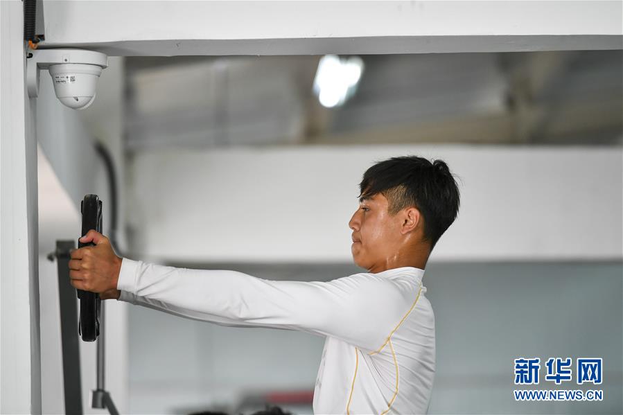 5月12日,新疆足协U19青年队球员吾米提江·玉苏普在进行体能训练。 当日,新疆足协U19青年队继续在新疆足球训练基地展开日常训练。球员们上午以体能力量练习为主,下午则在球场进行有球训练。据主教练帕尔哈提·阿孜买提介绍,球队结束在云南开远的冬训后经过短暂休整,于3月底重新在乌鲁木齐集结。接下来,球队将继续按教练组制定的训练计划,狠抓体能力量练习,同时打磨球员个人和整体技战术。 新华社记者 胡虎虎 摄