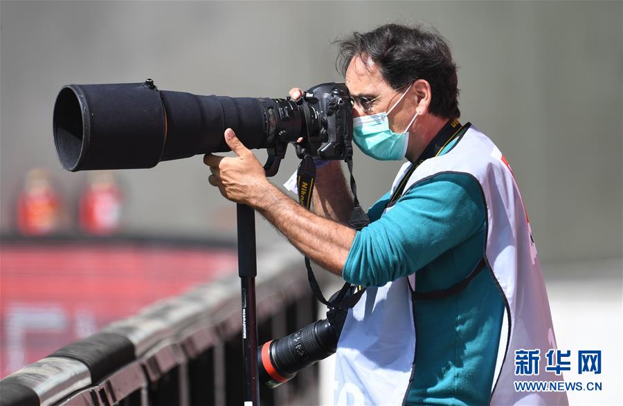 5月16日,一名摄影师戴着口罩在场边采访拍摄。 当日,受新冠肺炎疫情影响而停赛的2019-2020赛季德国足球甲级联赛迎来重启,成为欧洲五大联赛中最早恢复的联赛。在重启后的首轮比赛中,沃尔夫斯堡队客场以2比1战胜奥格斯堡队。 新华社/法新