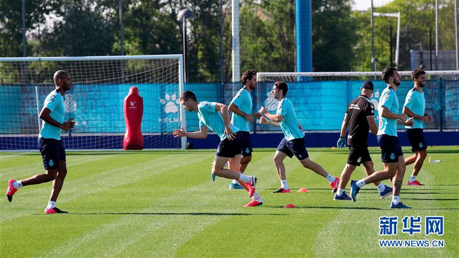 5月18日,西班牙人队球员在训练中。 当日,西班牙多家足球俱乐部恢复训练,并将训练人数限制在十人以内。 新华社发(西班牙人队供图)