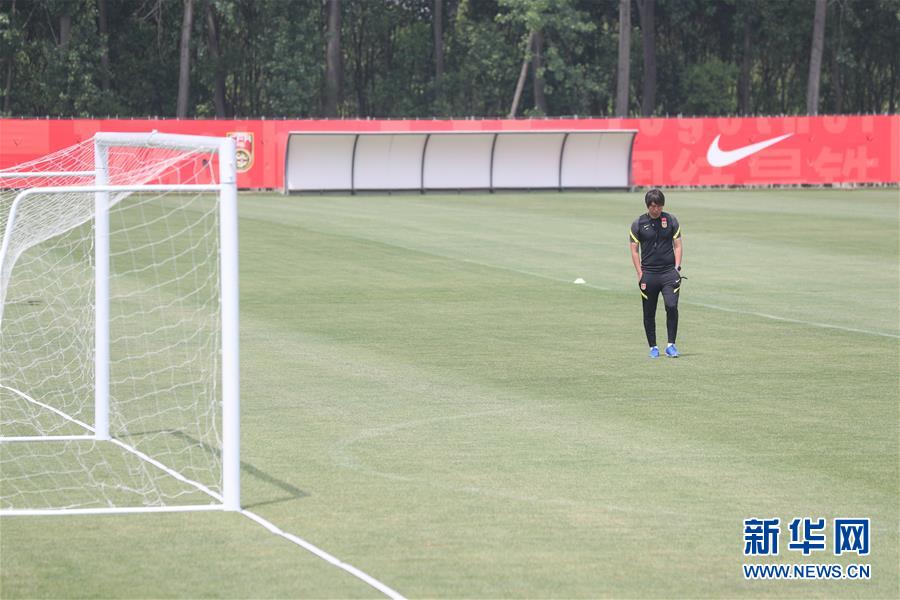 5月25日,国家男足主帅李铁在训练中。 当日,中国国家男子足球队继续在上海集训。 新华社记者丁汀摄