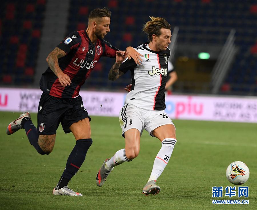 6月22日,尤文图斯队球员贝尔纳代斯基(右)与博洛尼亚队球员迪克斯在比赛中拼抢。 当日,在2019-2020赛季意甲第27轮比赛中,尤文图斯队客场以2比0战胜博洛尼亚队。 新华社发(阿尔贝托·林格利亚摄)