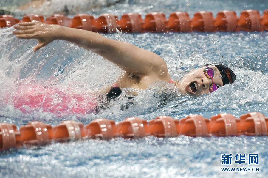 7月4日,安徽省游泳队运动员许郡祥在女子100米自由泳比赛中。 当日,安徽省游泳队在安徽省浩沙游泳馆举行今年第二场测试赛,26名运动员参加了17个项目的比赛。本场测试赛旨在检验疫情期间队伍封闭训练的成果,营造以赛代练和以赛促练的氛围。 新华社记者 周牧 摄