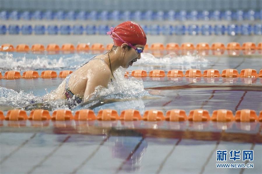 7月4日,安徽省游泳队运动员彭爱媛在女子100米蛙泳比赛中。 当日,安徽省游泳队在安徽省浩沙游泳馆举行今年第二场测试赛,26名运动员参加了17个项目的比赛。本场测试赛旨在检验疫情期间队伍封闭训练的成果,营造以赛代练和以赛促练的氛围。 新华社记者 周牧 摄