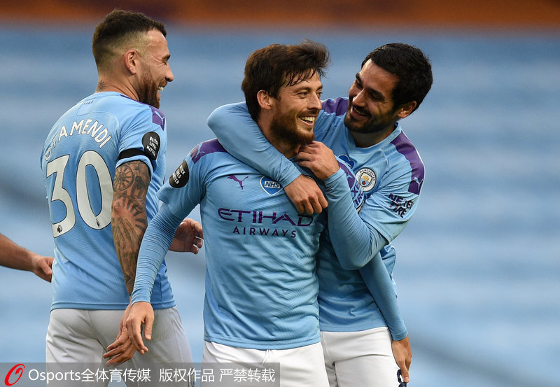 人民网北京7月9日电(杨磊) 北京时间7月9日凌晨,2019/20赛季英超第34轮继续进行,曼城主场5比0大胜纽卡斯尔,席尔瓦1球2助攻,热苏斯、马赫雷斯和斯特林破门,费德里科自摆乌龙。