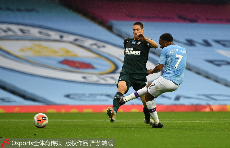 人民网北京7月9日电(杨磊) 北京时间7月9日凌晨,2019/20赛季英超第34轮继续进行,曼城主场5比0大胜纽卡斯尔,席尔瓦1球2助攻,热苏斯、马赫雷斯和斯特林破门,费德里科自摆乌龙。