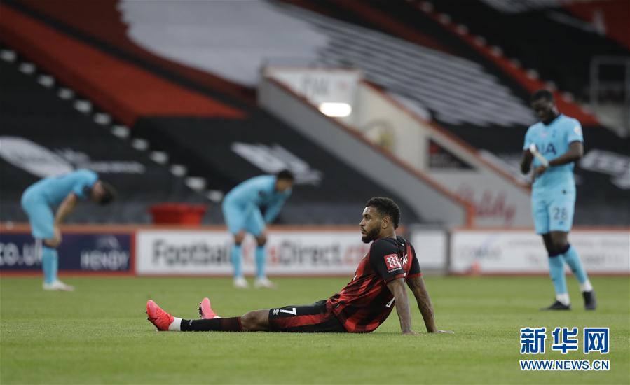7月9日,伯恩茅斯队球员约书亚·金(前)在比赛后神色落寞。 当日,在2019-2020赛季英格兰足球超级联赛第34轮比赛中,托特纳姆热刺队客场以0比0战平伯恩茅斯队。 新华社/路透