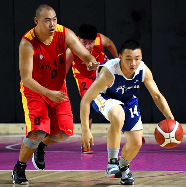 ↑7月12日,四川省青联代表队队员(红色)在比赛中。新华社记者 陈天湖 摄