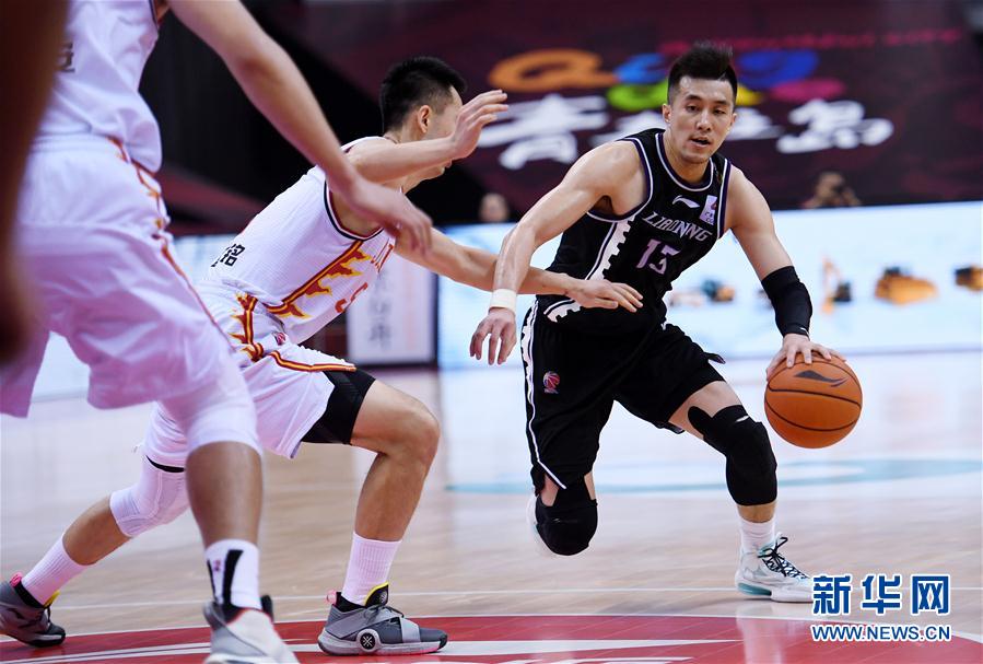 7月15日,辽宁本钢队球员郭艾伦(右)在比赛中带球突破。 当日,在山东青岛举行的2019-2020赛季中国男子篮球职业联赛(CBA)复赛第二阶段(崂山赛区)比赛中,辽宁本钢队以125比118战胜吉林九台农商银行队。 新华社记者 李紫恒 摄