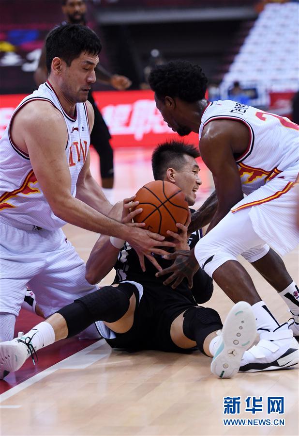 7月15日,辽宁本钢队球员郭艾伦(中)在比赛中与吉林九台农商银行队球员钟诚(左)、肖恩·希尔拼抢。 当日,在山东青岛举行的2019-2020赛季中国男子篮球职业联赛(CBA)复赛第二阶段(崂山赛区)比赛中,辽宁本钢队以125比118战胜吉林九台农商银行队。 新华社记者 李紫恒 摄