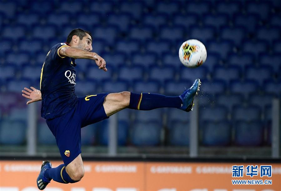 7月15日,罗马队球员姆希塔良在比赛中控球。 当日,在2019-2020赛季意大利足球甲级联赛第33轮比赛中,罗马队主场以2比1战胜维罗纳队。 新华社/法新