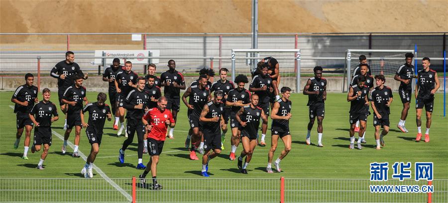 7月28日,拜仁慕尼黑队球员参加训练。 近日,拜仁慕尼黑队在德国慕尼黑恢复球队合练,备战当地时间8月8日与英超切尔西队的欧洲足球冠军联赛八分之一决赛次回合比赛。 新华社发(菲利普·鲁伊兹摄)