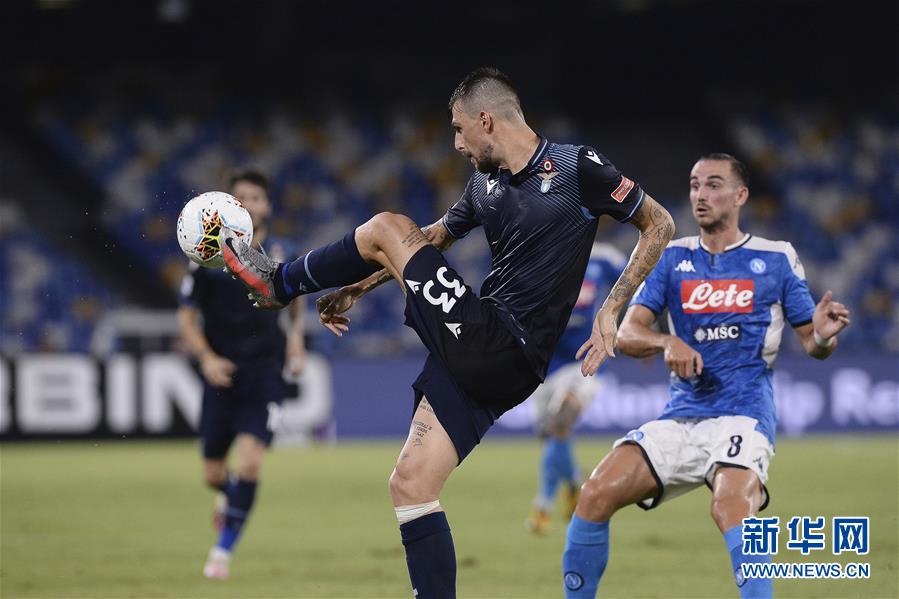 8月1日,拉齐奥队球员阿切尔比(前)在比赛中控球。 当日,在2019-2020赛季意大利足球甲级联赛第38轮比赛中,那不勒斯队主场以3比1战胜拉齐奥队。 新华社/美联