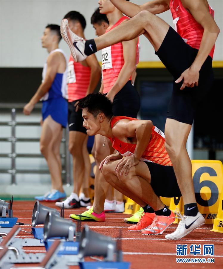 9月15日,浙江队选手谢震业(下)在起点处。最终,他以10秒31的成绩夺得男子100米比赛冠军。 当日,2020年全国田径锦标赛在浙江省绍兴市上虞体育场拉开战幕。 新华社记者 王丽莉 摄