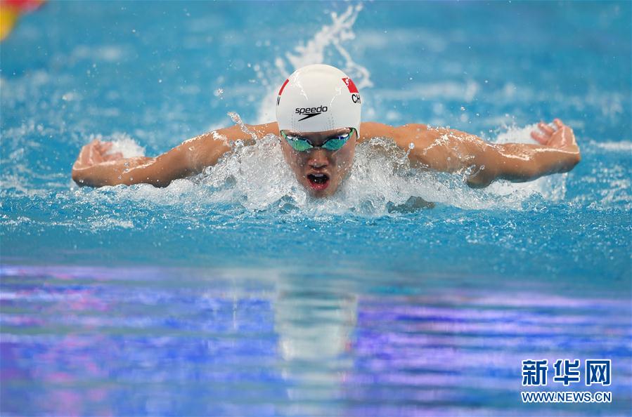 9月27日,汪顺在比赛中。 当日,在青岛举行的2020全国游泳冠军赛暨东京奥运会达标赛男子400米个人混合泳预赛中,浙江队选手汪顺以4分13秒36的成绩获得第一名。 新华社记者 陶希夷 摄