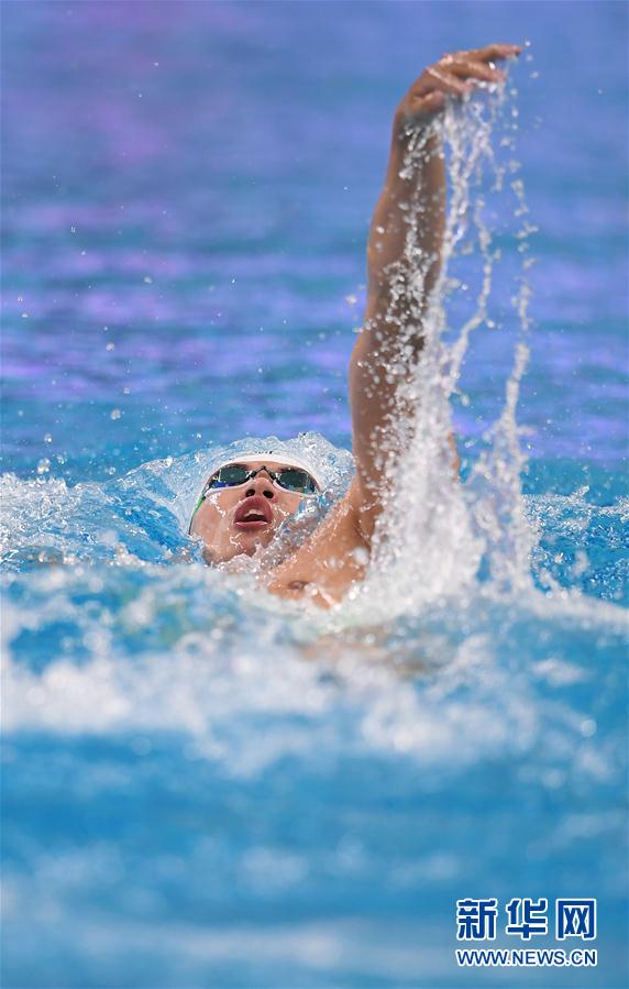 9月27日,汪顺在比赛中。 当日,在青岛举行的2020全国游泳冠军赛暨东京奥运会达标赛男子400米个人混合泳预赛中,浙江队选手汪顺以4分13秒36的成绩获得第一名。 新华社记者 陶希夷 摄