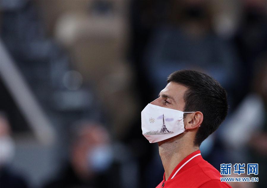 10月11日,焦科维奇在颁奖仪式上。 当日,在法国巴黎进行的2020年法国网球公开赛男单决赛中,塞尔维亚选手焦科维奇以0比3不敌西班牙选手纳达尔,获得亚军。 新华社记者 高静 摄
