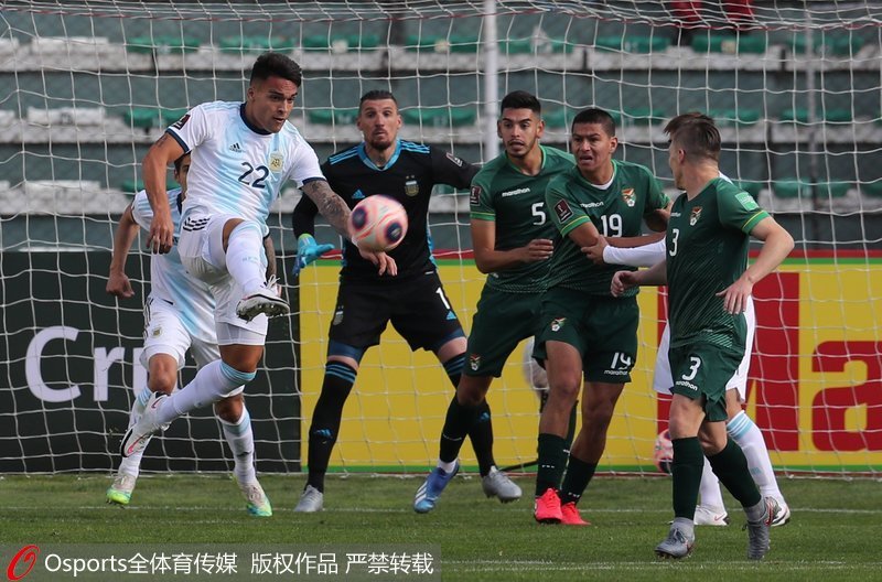 阿根廷第45分钟扳平,劳塔罗-马丁内斯反击中强突禁区左侧小角度传中被卡拉斯科拦下,但玻利维亚中卫解围被劳塔罗-马丁内斯挡入大门,1-1。