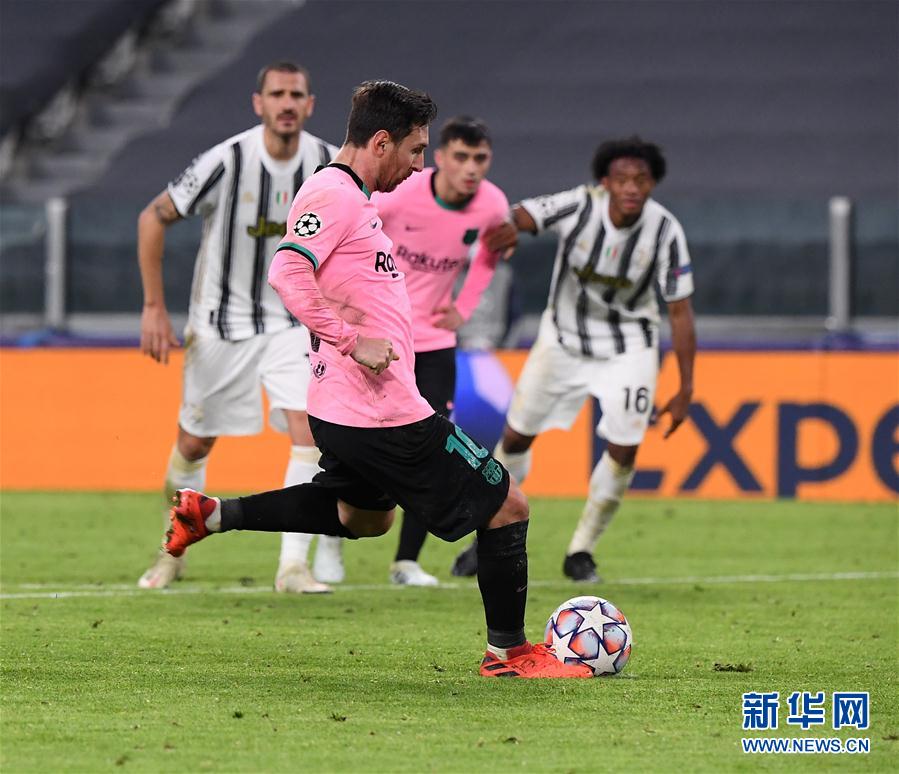 10月28日,巴塞罗那队球员梅西(前)在比赛中主罚点球命中。 当日,在2020-2021赛季欧足联冠军联赛小组赛G组第二轮的一场比赛中,西甲巴塞罗那队客场以2比0战胜意甲尤文图斯队。 新华社发(阿尔贝托·林格利亚摄)