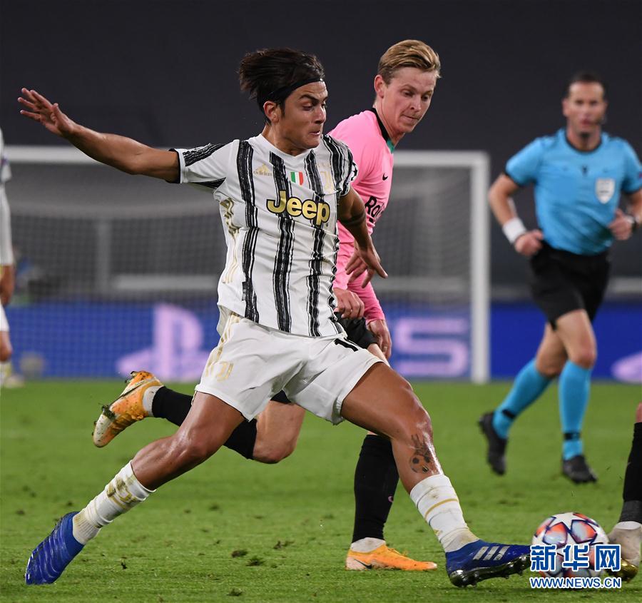 10月28日,尤文图斯队球员迪巴拉(前)与巴塞罗那队球员德容在比赛中拼抢。 当日,在2020-2021赛季欧足联冠军联赛小组赛G组第二轮的一场比赛中,西甲巴塞罗那队客场以2比0战胜意甲尤文图斯队。 新华社发(阿尔贝托·林格利亚摄)