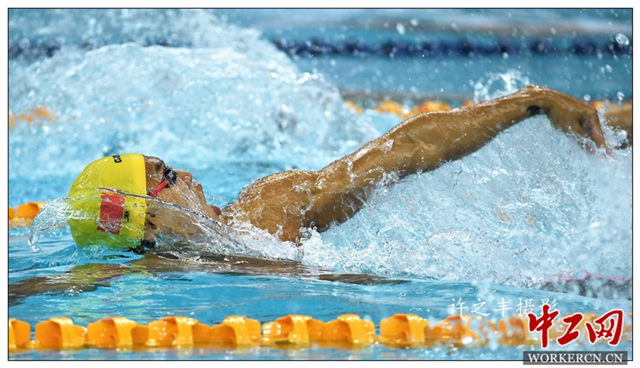 11月3日,2018年国际泳联短池游泳世界杯北京站比赛中,中国游泳领军人物徐嘉余表现出色,在男子50米仰泳决赛当中,以22秒70的成绩夺金,成为本站决赛唯一游进23秒的选手,并且徐嘉余的成绩还创造了全新的亚洲纪录,这是他本站赛事的第二块金牌。工人日报-中工网记者许之丰摄影报道