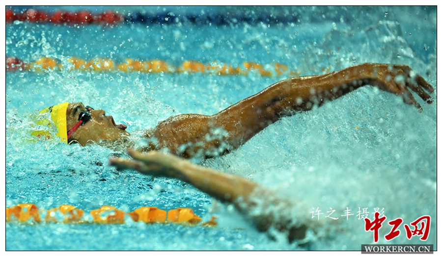 11月3日,2018年国际泳联短池游泳世界杯北京站比赛中,中国游泳领军人物徐嘉余表现出色,在男子50米仰泳决赛当中,以22秒70的成绩夺金,成为本站决赛唯一游进23秒的选手,并且徐嘉余的成绩还创造了全新的亚洲纪录,这是他本站赛事的第二块金牌。工人日报-中工网记者许之丰摄影报道