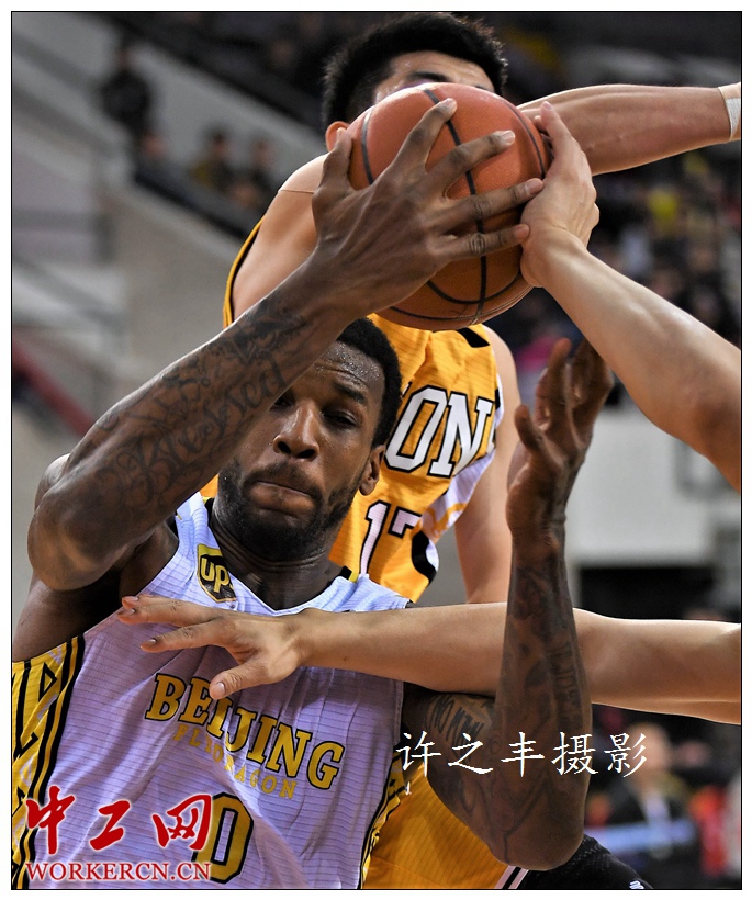 中工网讯 2019年1月8日晚,北京奥体中心篮球馆,CBA联赛第30轮比赛,北京农商行队主场以77比125负于广厦队,只有单外援出战的北京农商行队实力确实受到影响,输球48分也成为了本赛季比赛最大的分差纪录。图为双方的比赛瞬间。工人日报-中工网许之丰摄影报道