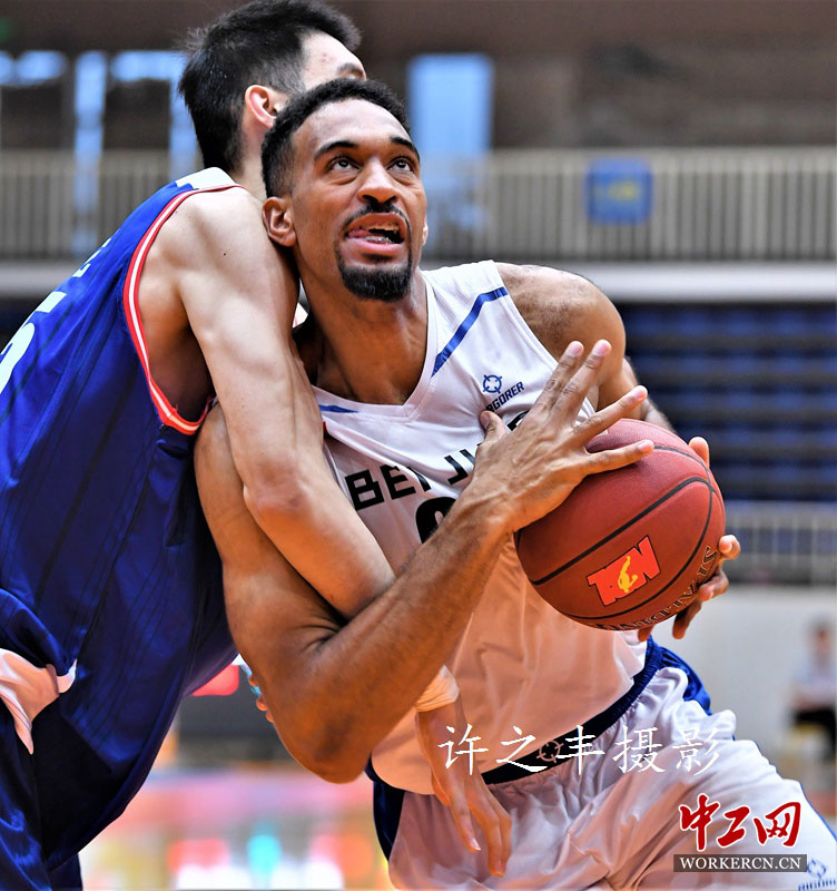 2019年6月7日晚,男篮NBL联赛第九轮,北京雄鹿队主场以127比122战胜河北翔蓝队。目前北京雄鹿队排名第九位,河北排名第十一位。北京队杨赢得35分,菲尔德35分,李梓铭19分,虞恒14分。河北队海耶斯赢得47分,董梦超27分,谷晨旭10分。图为双方比赛瞬间。工人日报-中工网许之丰摄影报道