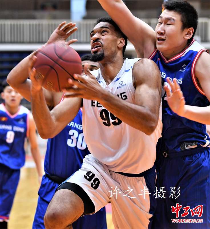 2019年6月26日晚,NBL联赛第17轮比赛,北京雄鹿队主场以111比96战胜合肥原创队。目前北京雄鹿队排名第8位,合肥队排名第9位。北京雄鹿队马奎斯33分10篮板,霍利菲尔德23分21篮板,王启鹏14分,李梓铭14分;合肥原创队塔克28分7篮板10助攻,坎贝尔21分,刘子豪19分,李炎哲10分。图为双方的比赛瞬间。工人日报-中工网许之丰摄影报道