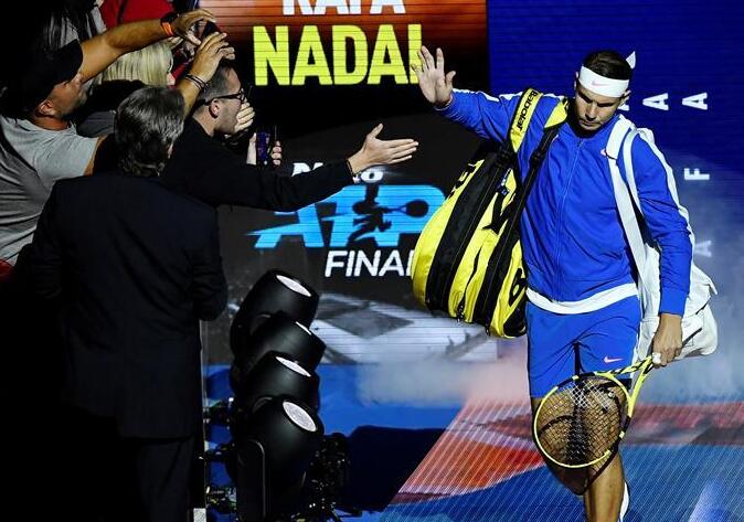 当日,在2019ATP世界巡回赛年终总决赛第二日单打小组赛中,西班牙选手纳达尔以0比2不敌德国选手兹维列夫。(新华社/路透)