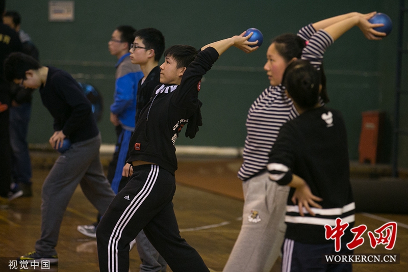 2015年3月15日,杭州一家体育培训机构,学生们在为体育中考加紧训练。