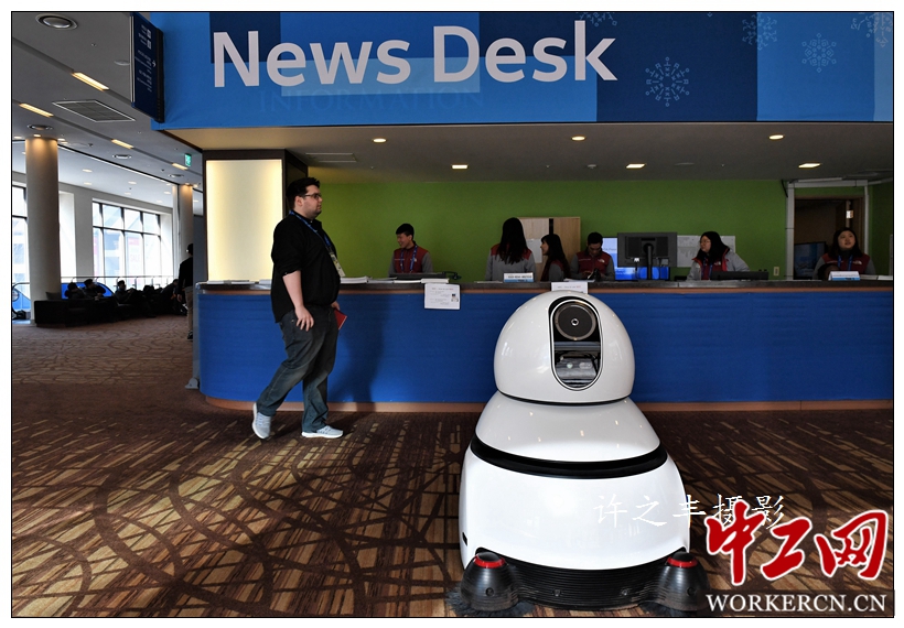 图为MPC的机器人帮助记者服务。工人日报-中工网记者许之丰摄影报道
