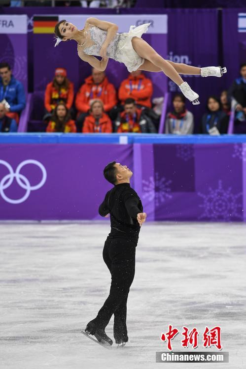 双人滑短节目比赛中的中国组合于小雨/张昊。 中新社记者 崔楠 摄