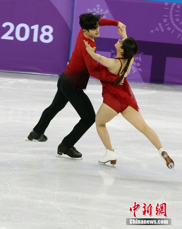 2月12日,美国队在平昌冬奥会江陵冰上体育场举行的花样滑冰团体赛中获得铜牌。图为美国队选手在比赛中。