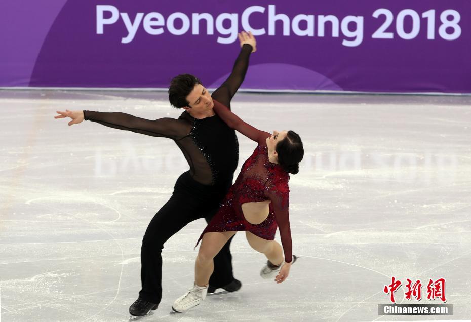 2月12日,加拿大队在平昌冬奥会江陵冰上体育场举行的花样滑冰团体赛中夺得金牌。图为加拿大选手在比赛中。 中新社记者 宋吉河 摄