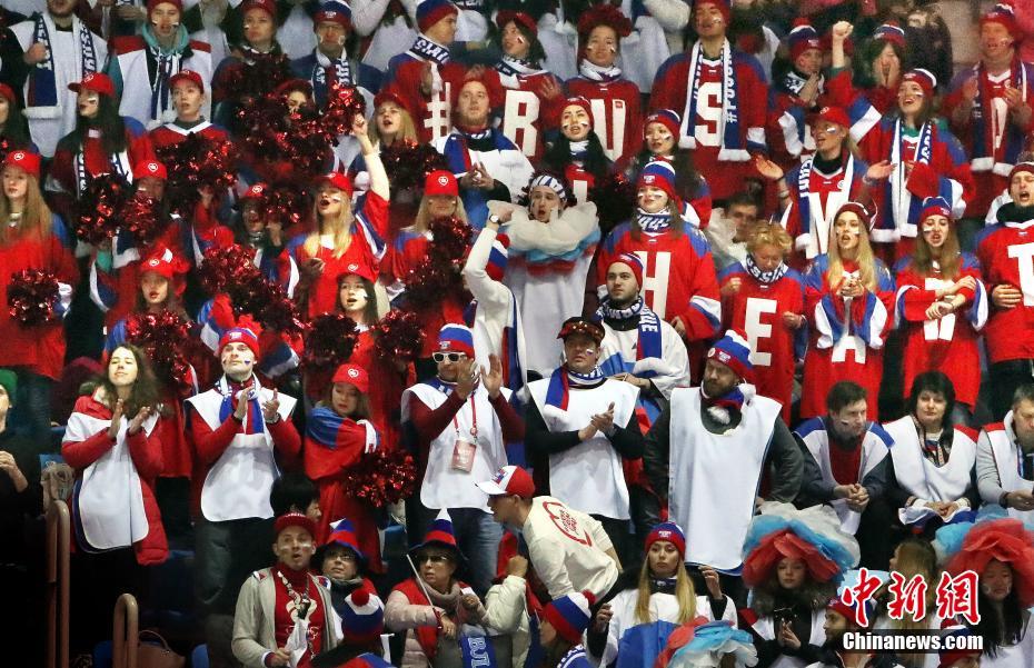 2月12日,加拿大队在平昌冬奥会江陵冰上体育场举行的花样滑冰团体赛中夺得金牌。图为拉拉队在现场加油助威。