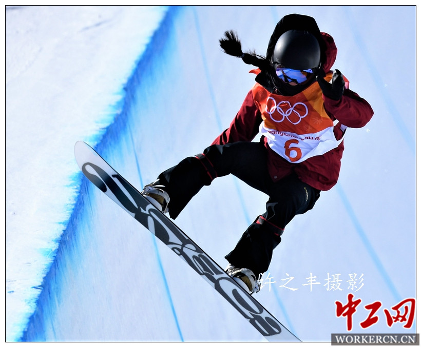 2018年2月13日上午,2018年平昌冬奥会单板滑雪女子U型场地决赛, 刘佳宇以89.75获得银牌,这是中国队在冬奥会该项目最好成绩,刘佳宇创造历史,同时这也是中国军团在平昌冬奥首枚奖牌。美国选手克洛伊*金夺得金牌。工人日报-中工网特派记者许之丰摄影报道