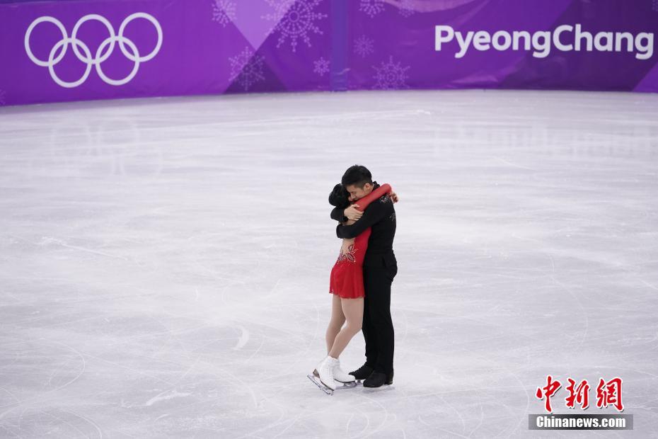 当地时间2月15日,2018平昌冬奥会花样滑冰双人滑自由滑的比赛中,中国组合隋文静/韩聪全新演绎经典曲目《图兰朵》,获得153.08分,并以总分235.47摘得银牌,两人距获得冠军的德国组合萨维申科/马索特仅差0.43分。图为中国组合隋文静/韩聪在比赛中。中新社记者 崔楠 摄