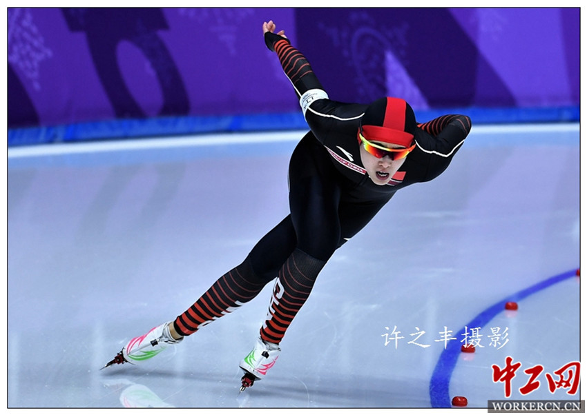 2018年2月14日晚,平昌冬奥会速滑女子1000米比赛中,中国三名选手,第五组的老将于静率先出场,滑出了1分16秒361的成绩,获得第17名。田芮宁第六组出场,这是她首次参加冬奥会,以1分16秒69,获得第21名。索契冬奥会冠军张虹第11组出场,以1分15秒67获得第11名。最终荷兰选手特莫尔斯以1分13秒56夺得冠军,并一举打破奥运纪录。图为这几位选手在比赛中。工人日报-中工网特派记者许之丰摄影报道
