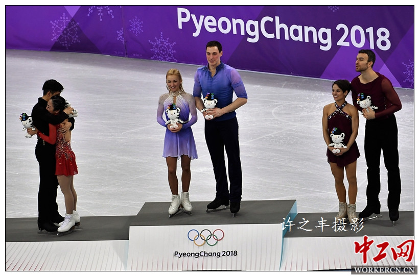 2月15日,2018年平昌冬奥会在江陵冰上运动场,花样滑冰双人滑自由滑比赛中,短节目排名第一的隋文静/韩聪倒数第二位出场,最终自由滑获得分153.08分,总分235.47遗憾获得亚军,仅落后冠军0.43分。这是隋文静/韩聪颁奖结束后抱着前奥运会冠军申雪和赵宏博留下了伤心的眼泪。这是2009年1月8日工人日报体育版刊用的隋文静/韩聪的照片,那时他俩是第一次搭档参加全国比赛,近10年来这对搭档能站在奥运会的领奖台上已经很不容易了。期待着你们2022年北京冬奥会的金牌。工人日报-中工网特派记者许之丰摄影报道